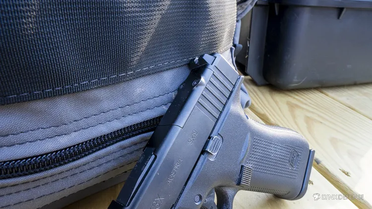 The 10mm Glock 20 is a handful - and so is the ammo. The Prime range bag has room for this full-size pistol plus the extra magazines you'll want for a proper 10mm range session.